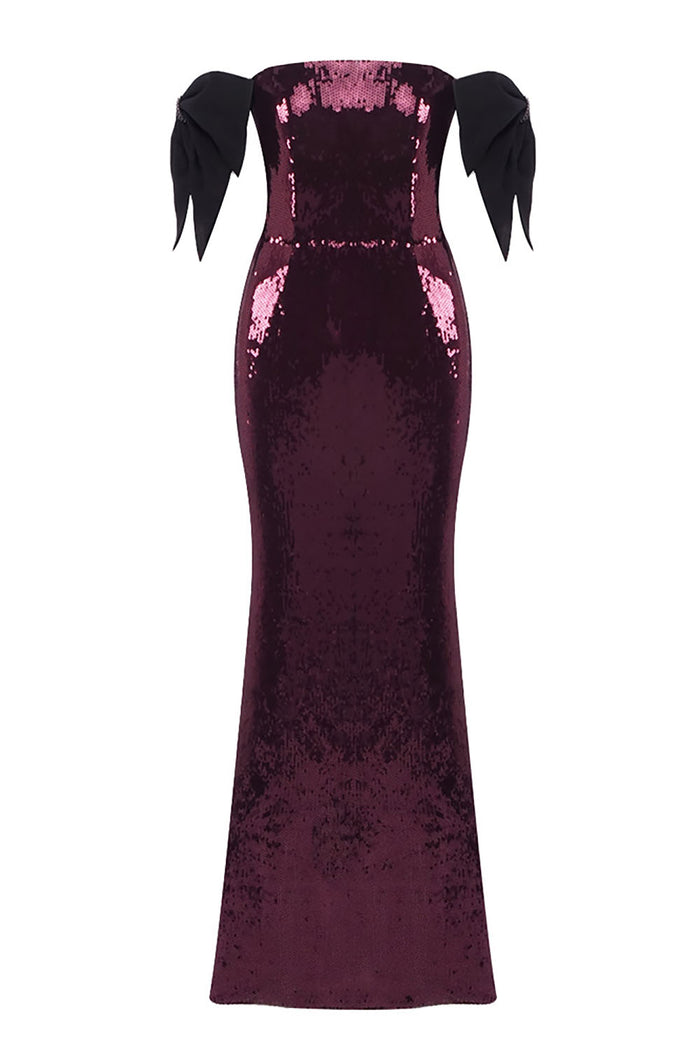 Off Shoulder Puff Long Sleeve Midi Bandage Dress