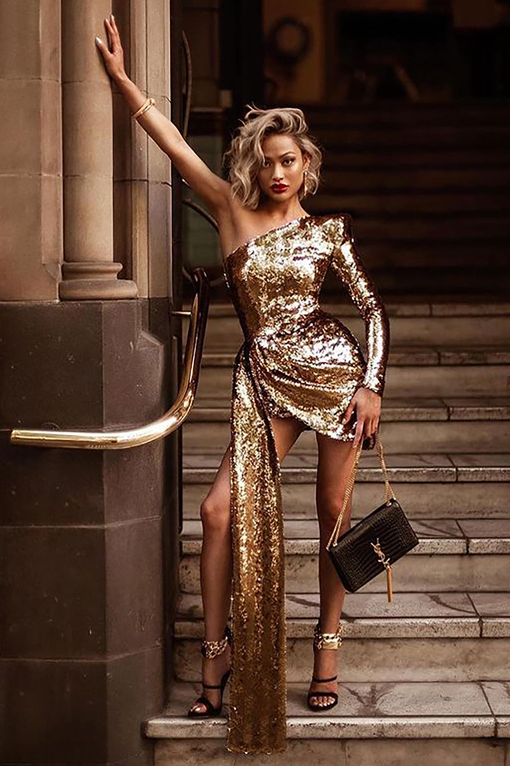One Shoulder Sequin Mini Dress