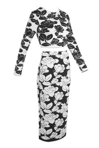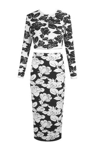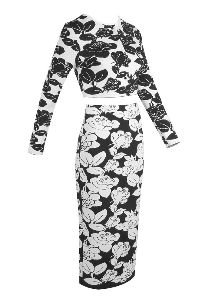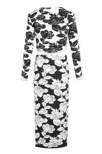 Flower-jacquard Midi Pencil Skirt