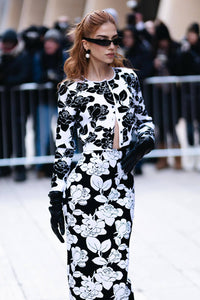 Upgrade your wardrobe with our exquisite Flower-jacquard Midi Pencil Skirt. Made with premium flower-jacquard fabric, this skirt boasts a versatile midi length and timeless pencil silhouette. Enjoy the perfect blend of style and comfort, and elevate your outfit for any occasion.