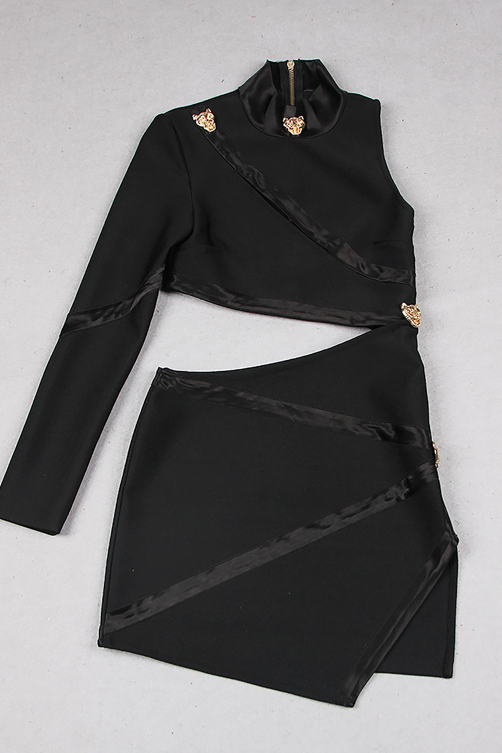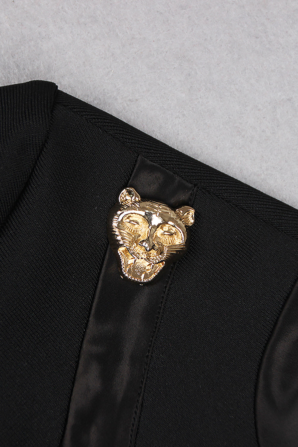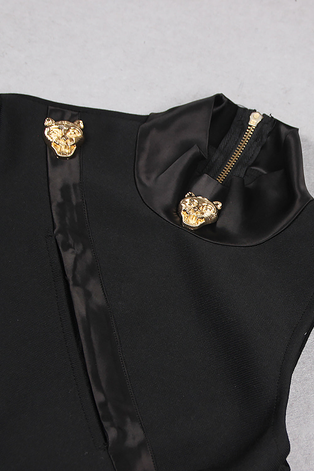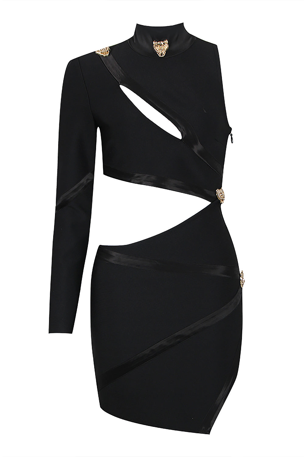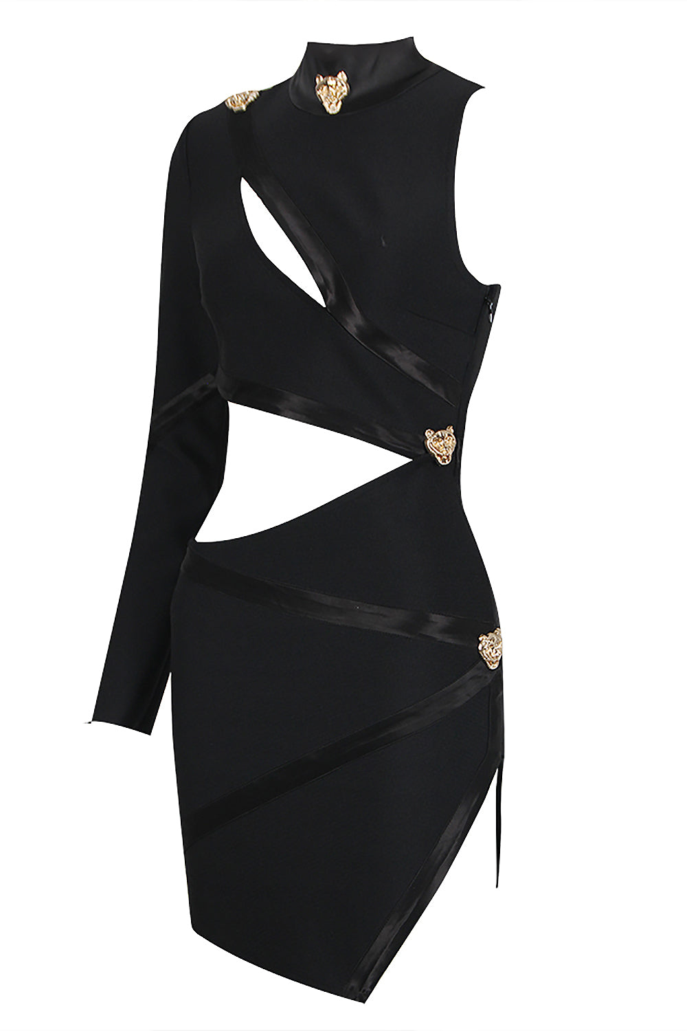 Panther Head Cut Out Asymmetric Mini Bandage Dress
