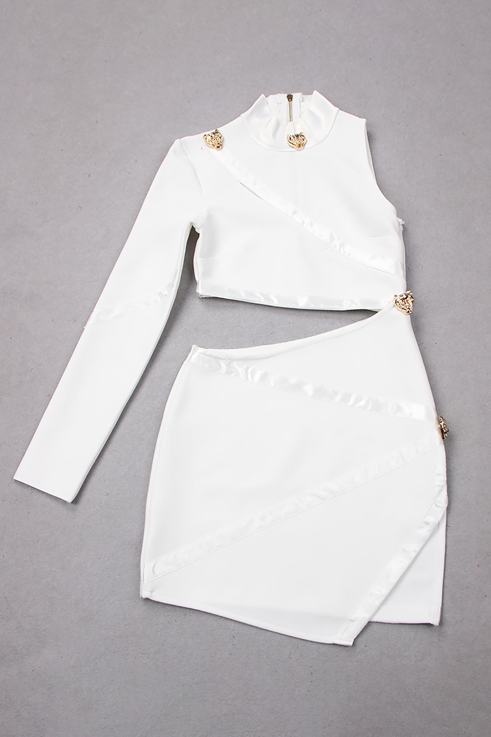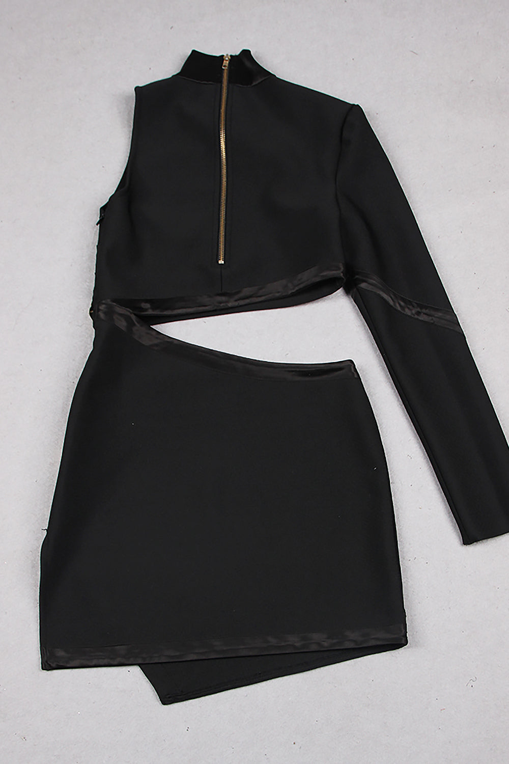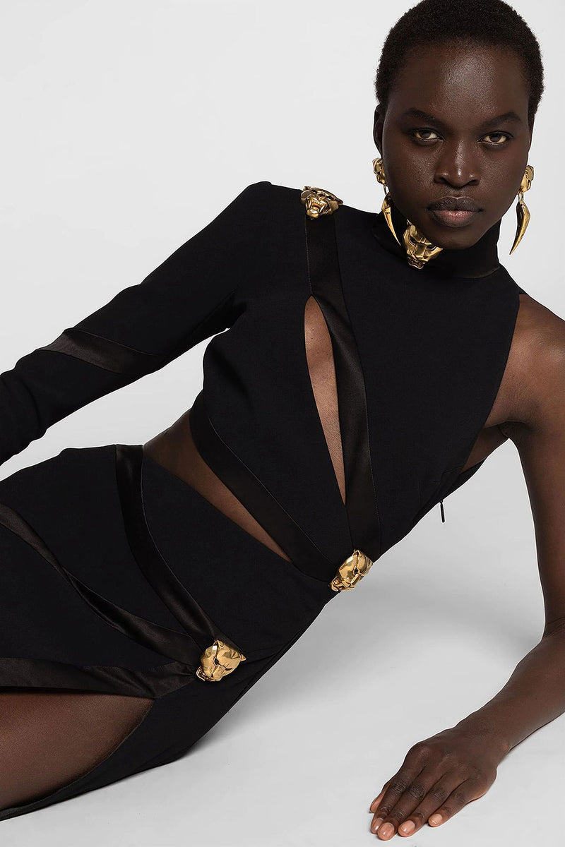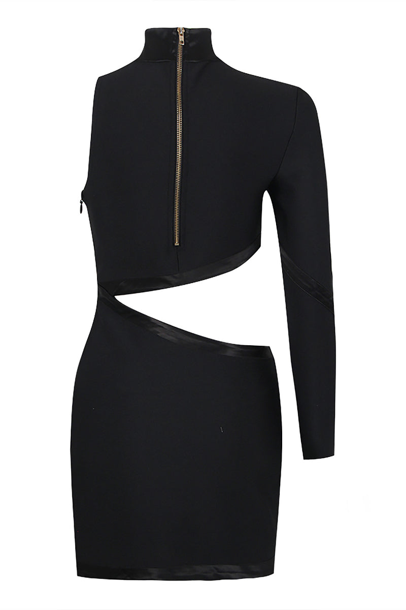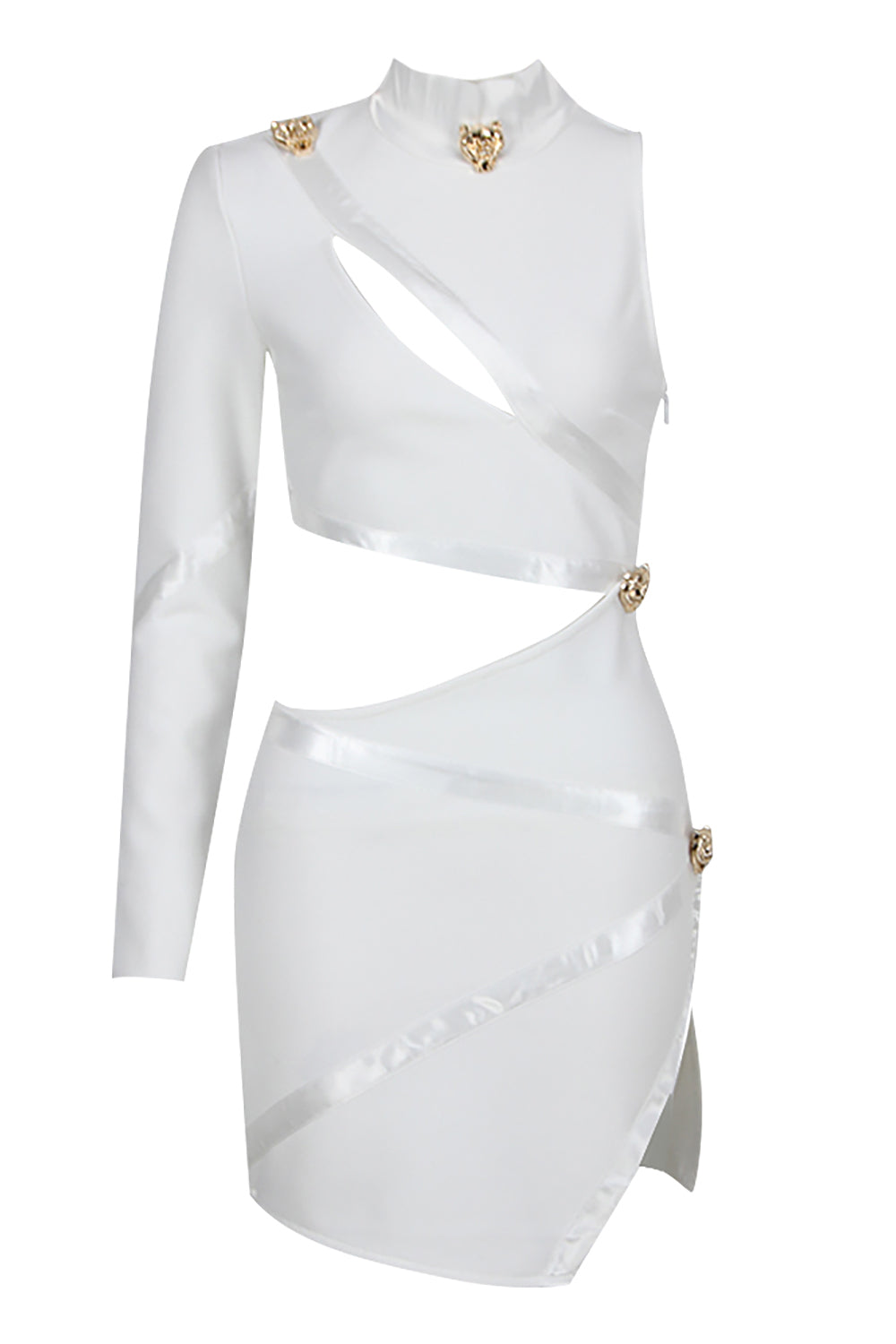 Panther Head Cut Out Asymmetric Mini Bandage Dress