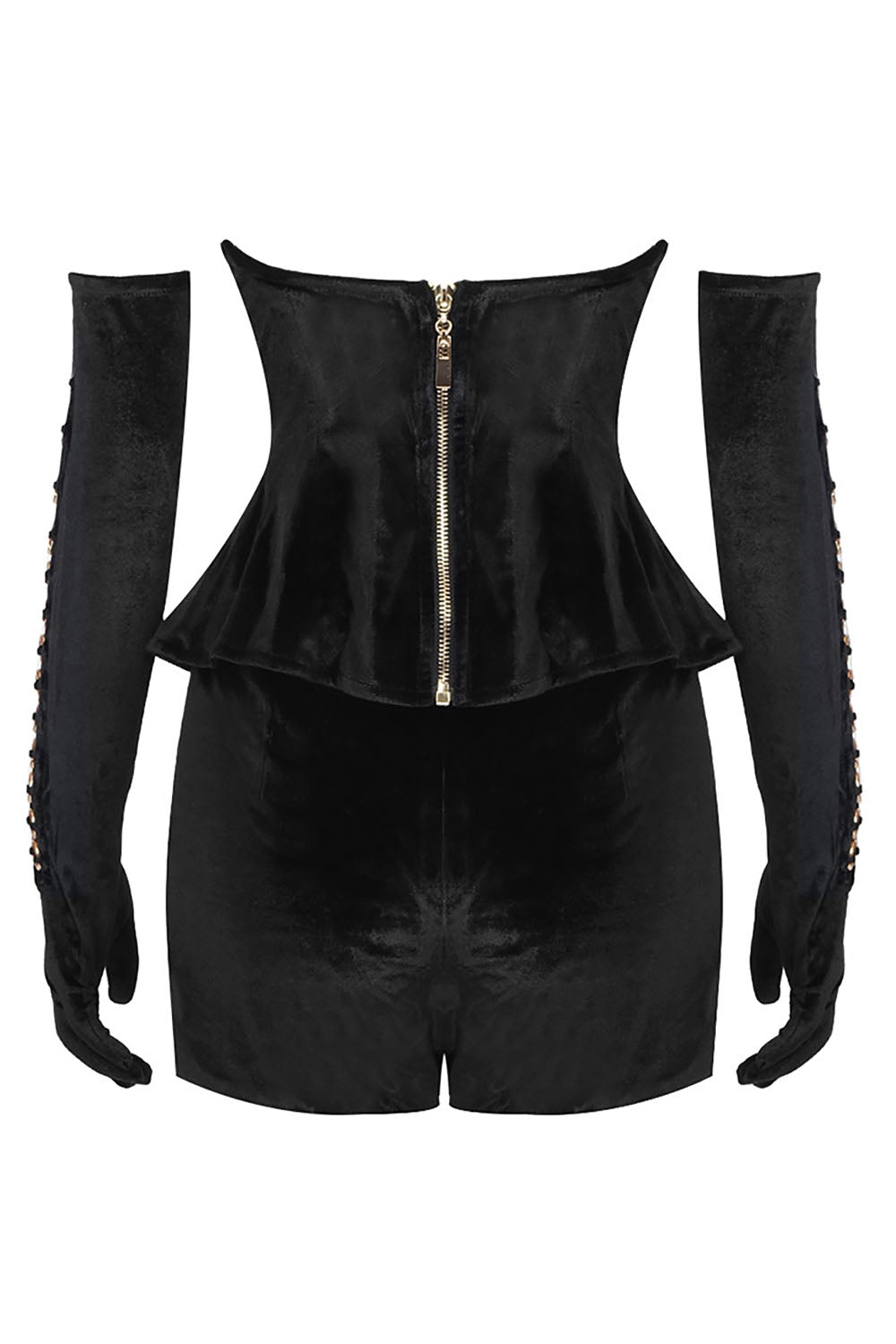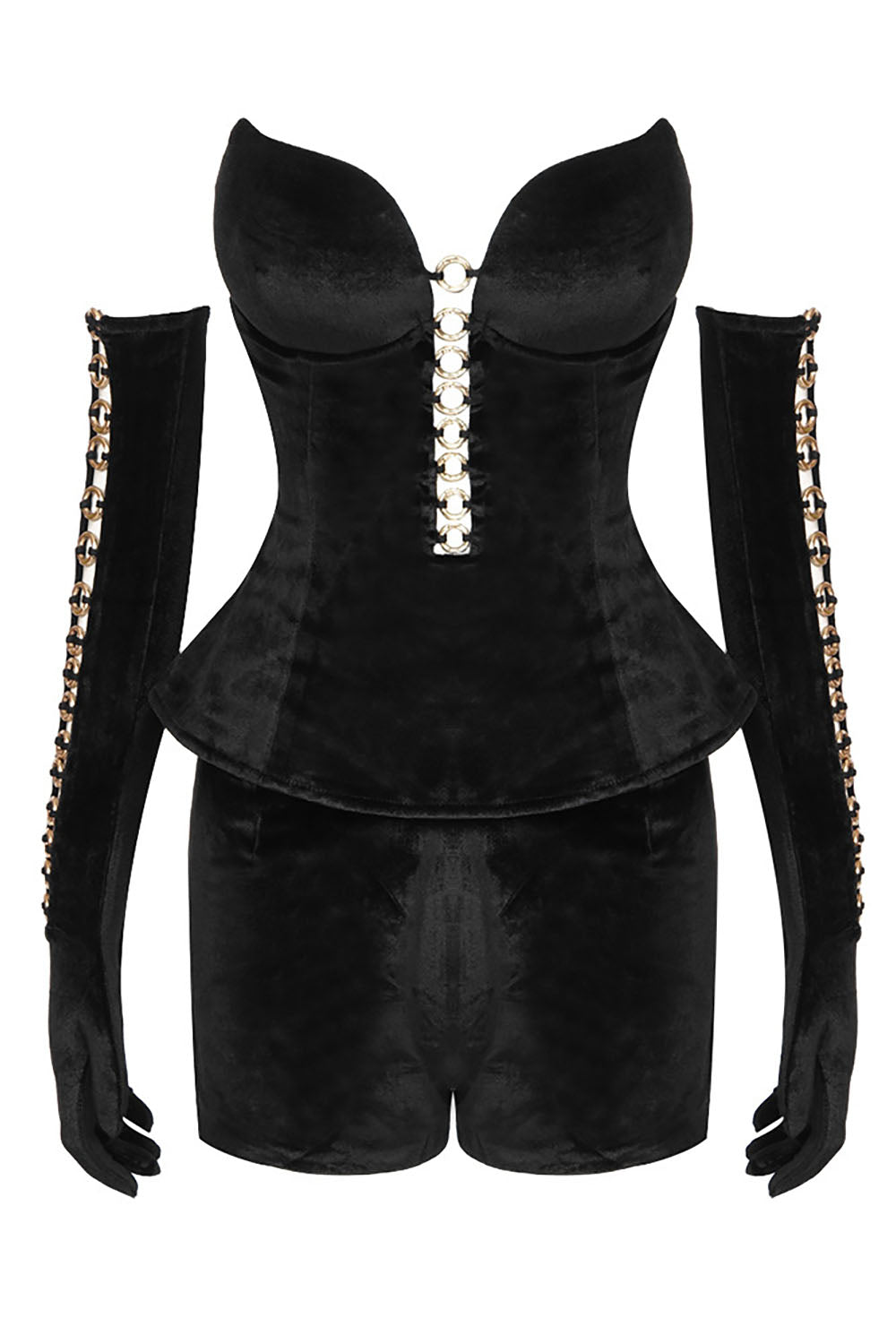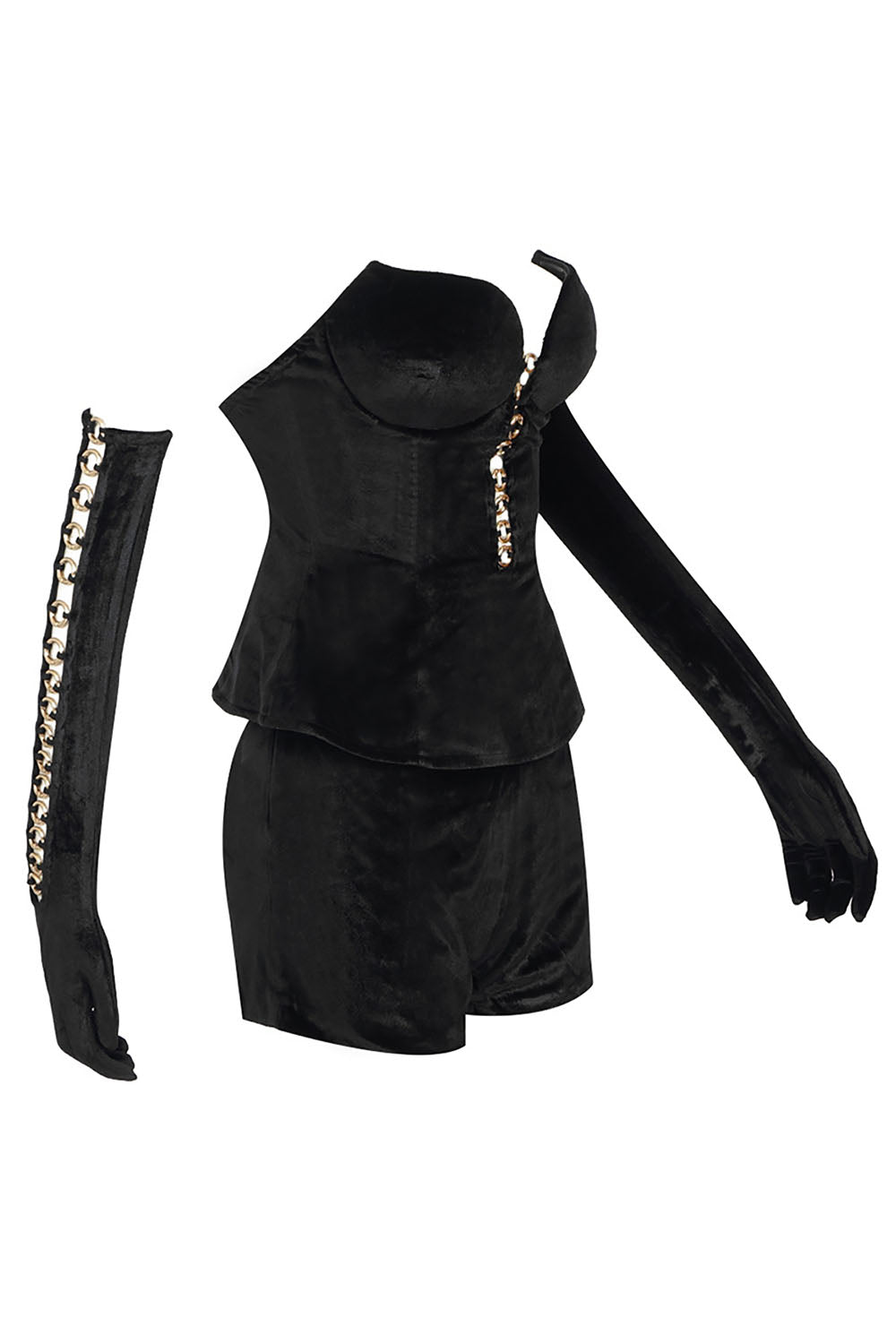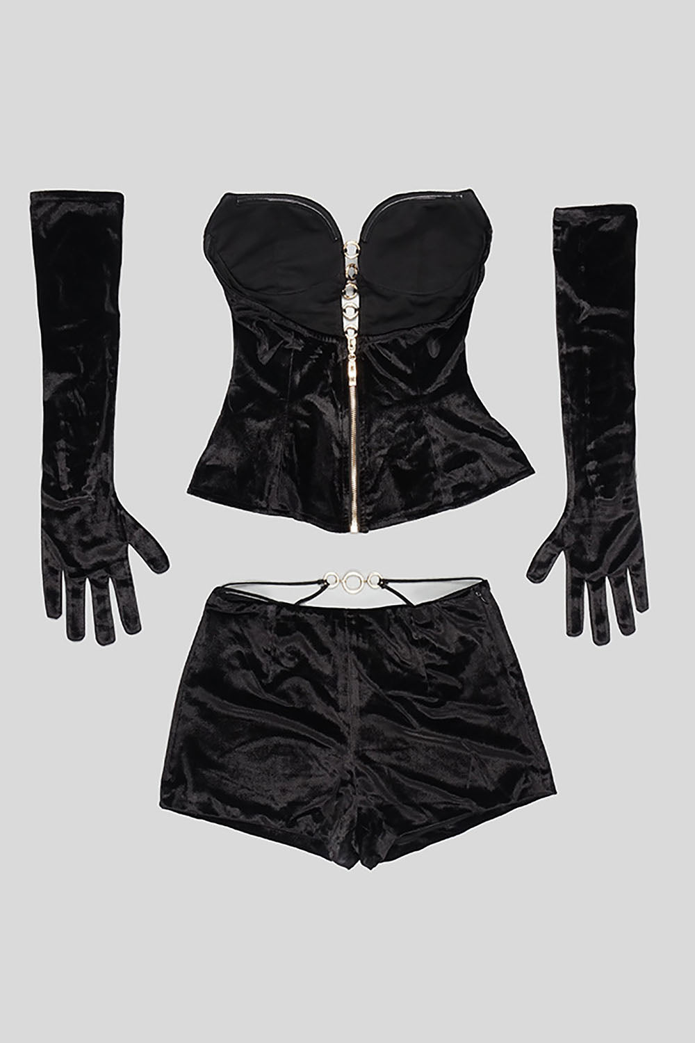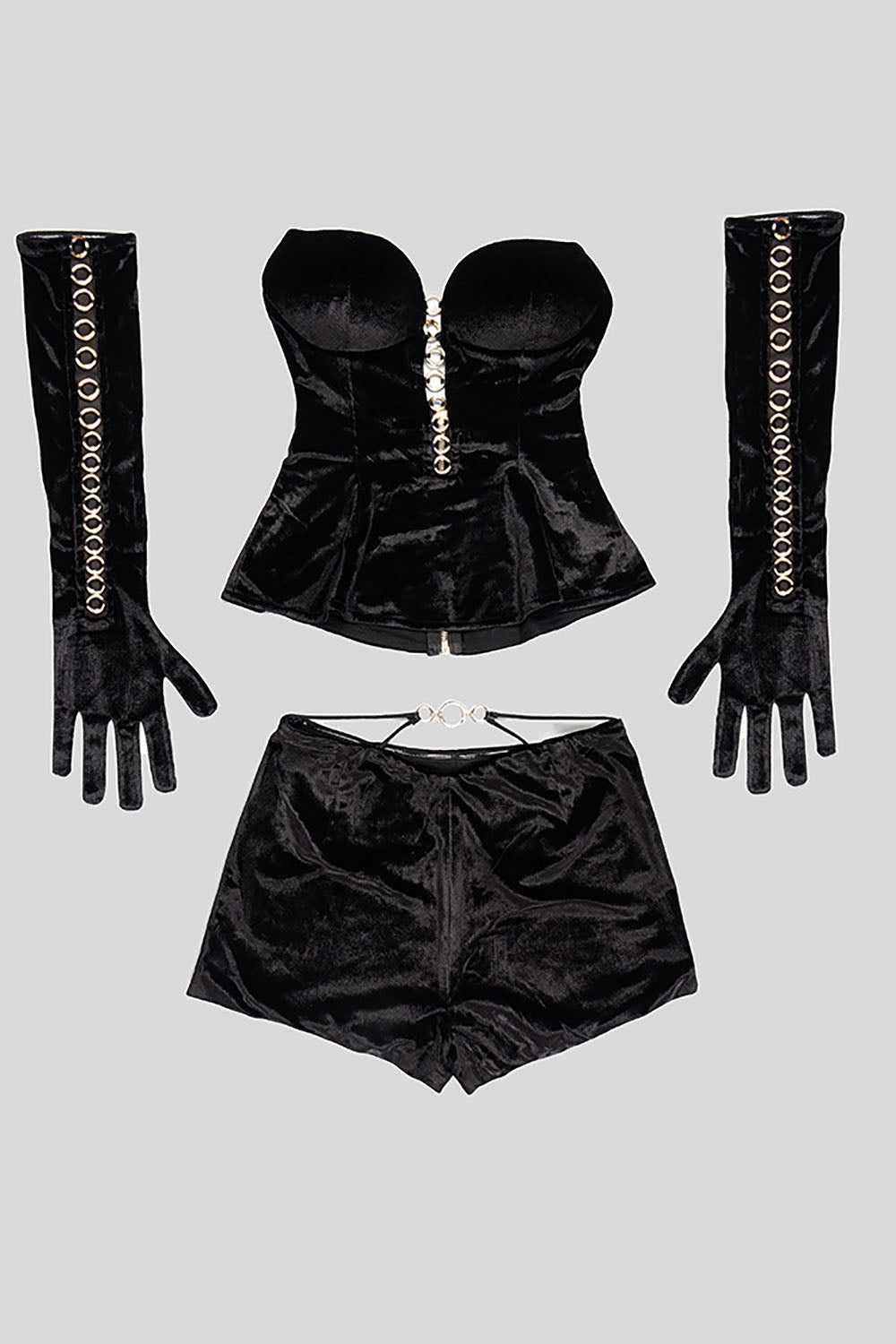 Velvet Ring Embellished Tube Top and Shorts Gloves