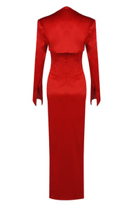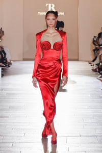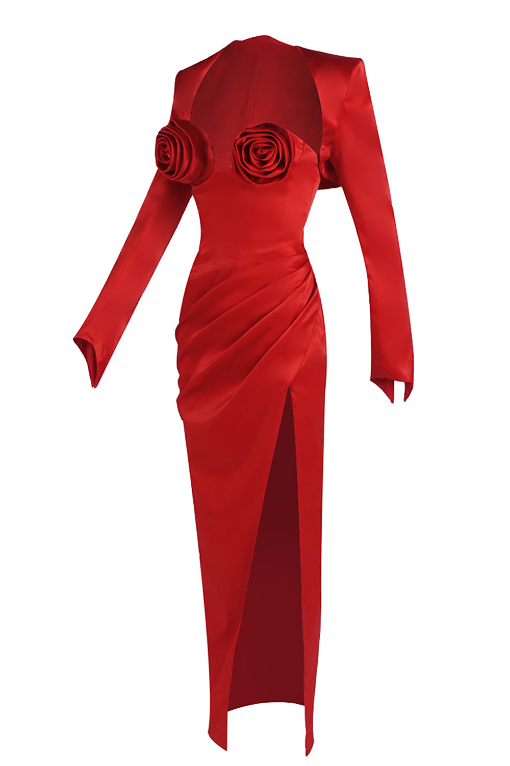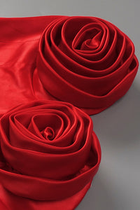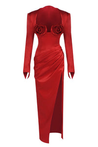 Roses Bust Detailing Satin Draped Maxi Dress